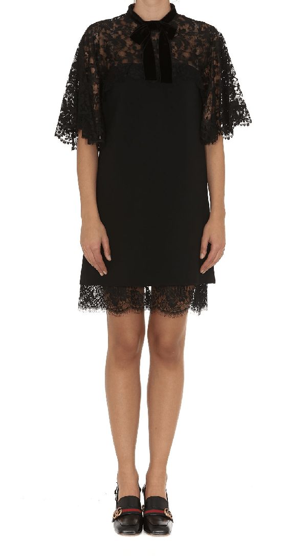 Shop the gg silk and lace lingerie dress in black at gucci.com.